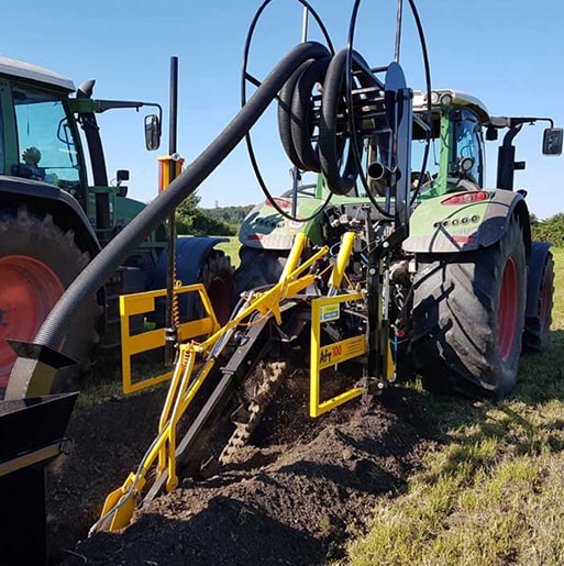 For larger tractors over 70HP, the AFT100 with our unique soil clear-up two tier conveyor system offers high speed, accurate trenching, up to 10 times faster than a backhoe or excavator.