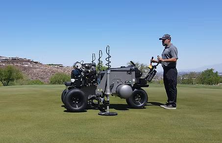The award winning AIR2G2 operates on a unique principle of using high-pressure air to fracture compacted soil layers beneath the turf without causing surface disruption.