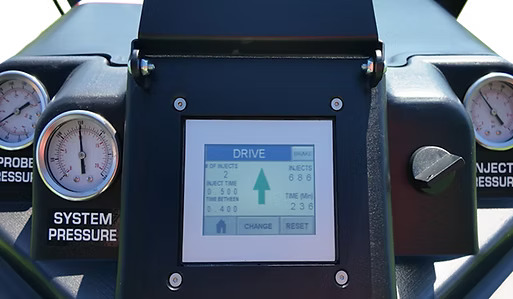 The three-probe injector system delivers precise air injections directly into the soil, promoting improved aeration, root growth, and turf vitality. 18cm 23cm 30cm