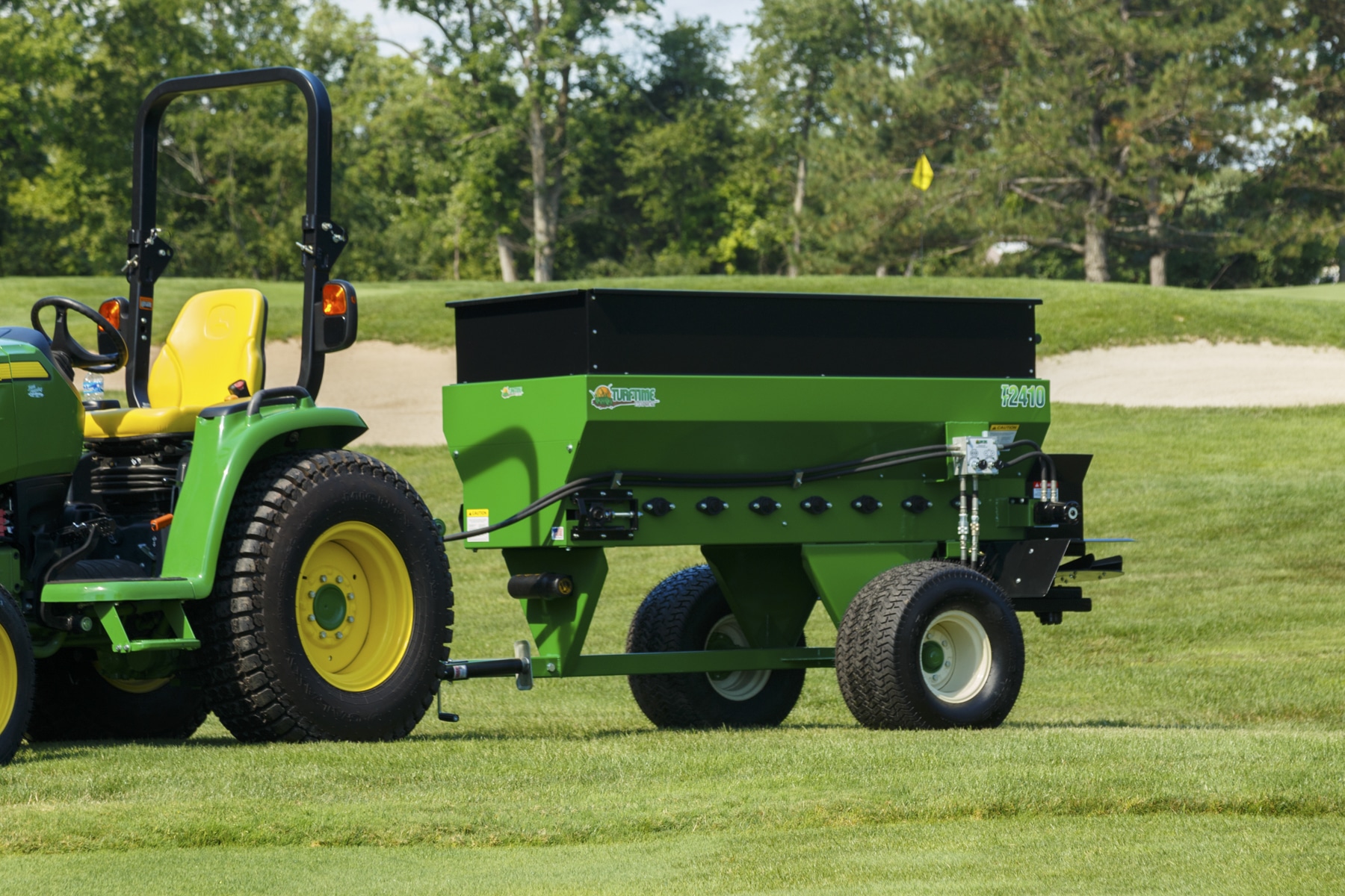 TurfTime Equipment’s TT-2400 Series mid-sized Topdressers are of superb quality, designed to save time and money on turf maintenance when applying compost, sand and soil amendments. Used on golf greens, fairways, approaches, aprons and fringes, sports complexes, ball fields, horse tracks, and sod farms or race tracks, this top quality machine spreads topdressing materials very quickly, in wet or dry conditions.