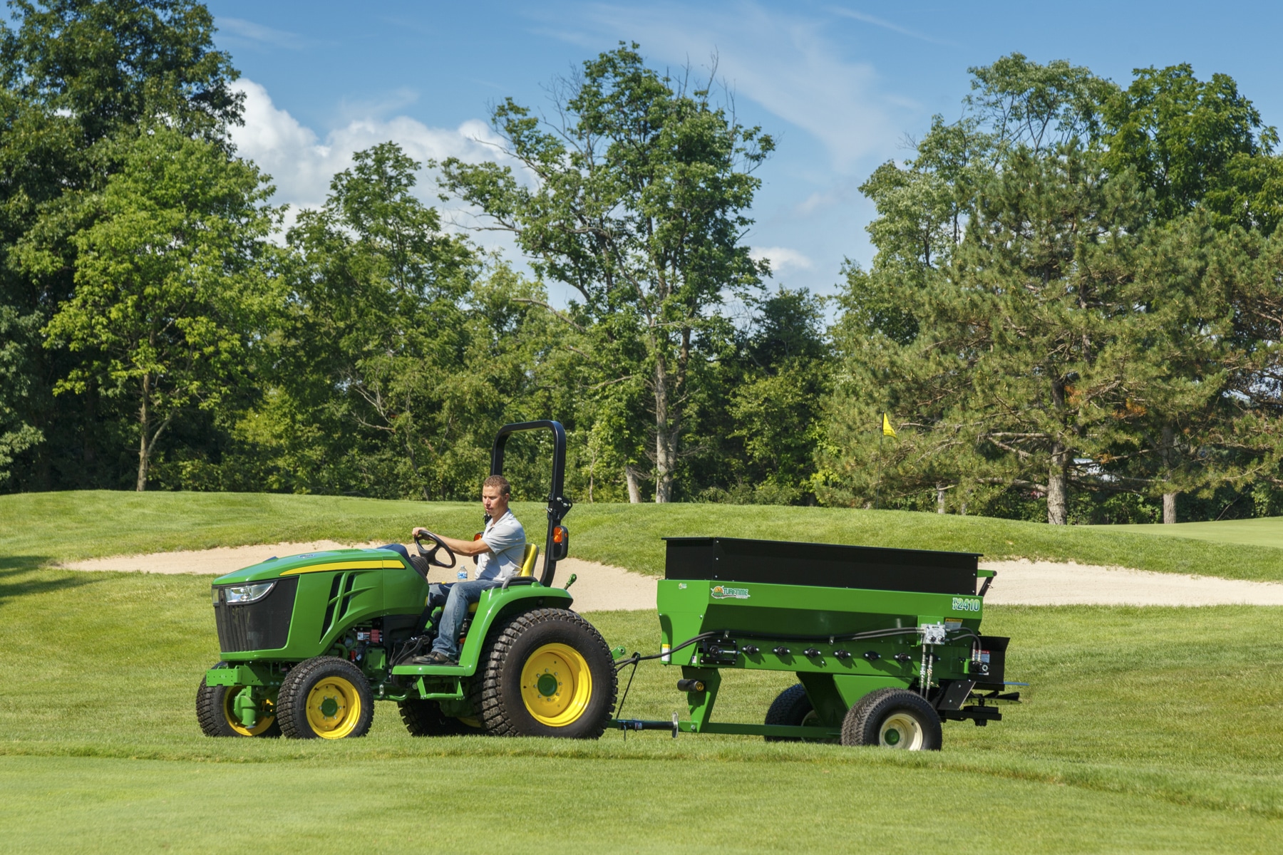 It is large enough to efficiently apply top dressing to playing fields, yet still agile in smaller spaces.